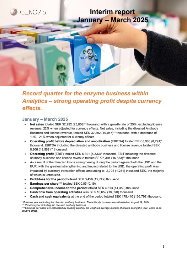 In closing, I would like to extend my sincere thanks to all employees at Genovis for their fantastic efforts at the start of the year – efforts that reflect our commitment to providing our customers with tools to help develop the medicines of the future.