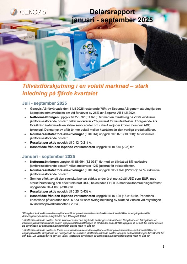 Genovis AB Delårsrapport januari-september 2025